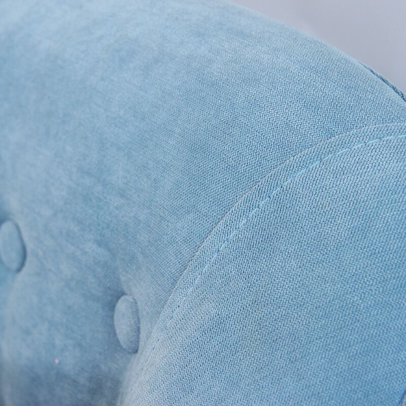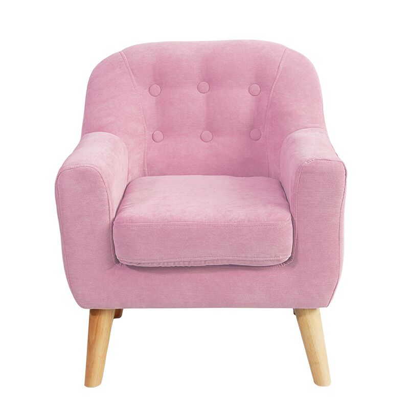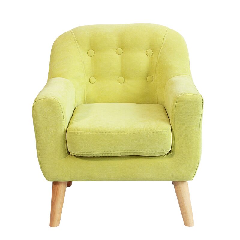 Traditional design with curved lines, clear finished rubberwood angled legs, and the button detail adds structure and texture to the backrest. The smooth line between backed and armrest, 8cm thinkness foam cushioning make for a well-supported, medium-firm sit. In high-quality pile-cutting fabric.