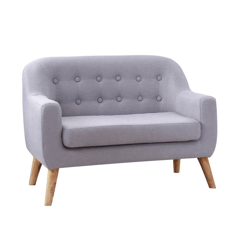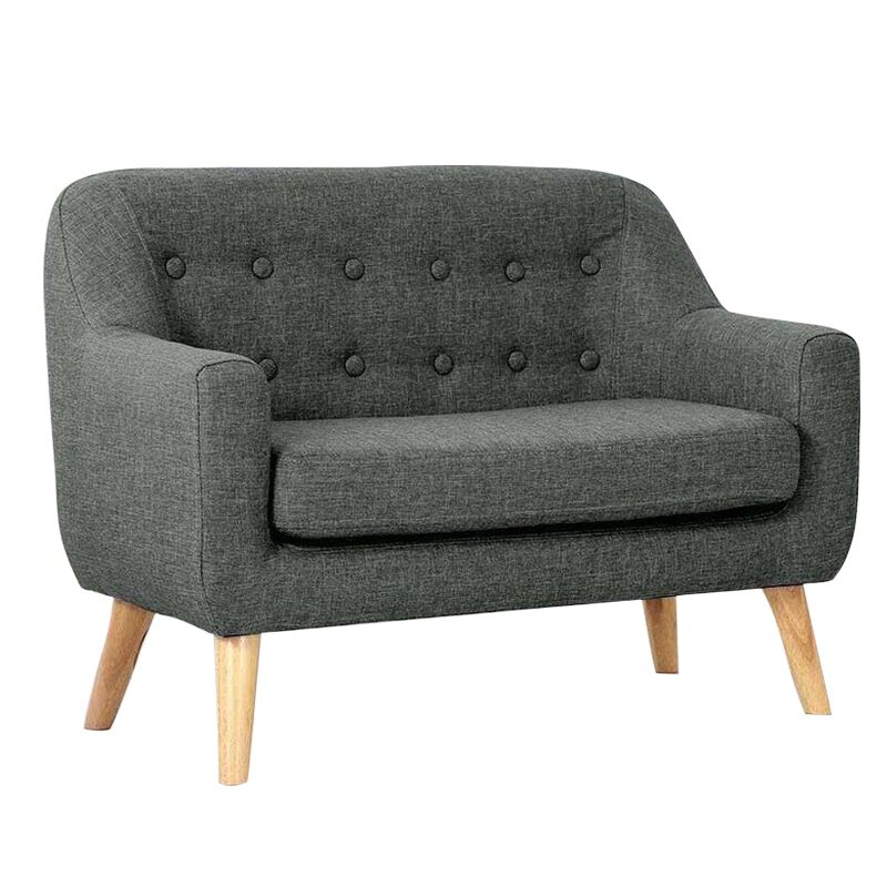 Traditional design with curved lines, clear finished rubberwood angled legs, and the button detail adds structure and texture to the backrest. The smooth line between backed and armrest, 8cm thinkness foam cushioning make for a well-supported, medium-firm sit. In high-quality pile-cutting fabric.